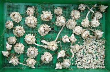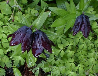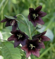 In onze zoektocht naar "zwarte" bloemen stuitten we op deze prachtige, maar zeldzame Fritillaria! Diep donker purper moeten de grote, hangende klokbloemen (1-8 per stengel) natuurlijk heten, een pittig contrast met het frisse blad. De hoogte zal ongeveer 25-40 cm bedragen. Geef ze een halfschaduwplek in vochthoudende, humusrijke grond. Bloeitijd april-mei. Inheems in Noord-Amerika en Japan. De naam Indian Rice dankt de plant aan de vele witte broedknolletjes, die aan de hoofdknol komen.