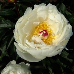 (1924) Geurende, bolvormige witte bloemen met soms wat rode vlekjes in het midden. Als de bloem opengaat kleurt het hart roomwit door de meeldraden. Rijke bloei door de vele zijknoppen. Stevige bloemstengels van ca. 90 cm. Bloeit vanaf eind mei.