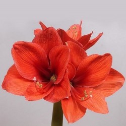 REUSACHTIGE BOLLEN! Deze grootbloemige Amaryllis heeft de grootste bolmaat die we kunnen krijgen en geeft gegarandeerd 3-4 bloeistengels met elk 4-6 bloemen. Sterke, langbloeiende Amaryllis in frisse oranjerode kleur.