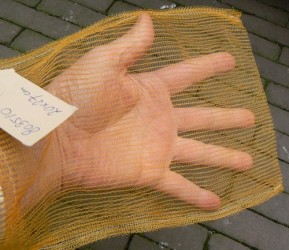Ideale fijnmazige zakken van 20x27 cm, die wij zelf gebruiken voor het verpakken van bollen, sjalotten, uitjes e.d. De kleine maten kunnen bijvoorbeeld worden gebruikt voor de bescherming van druiventrossen, maïskolven e.d. tegen vogelvraat, wespen, muizen etc. maar ook voor de opslag (bijvoorbeeld door ophanging) van kleine hoeveelheden bollen, uien, aardappels etc. De grote maat is ideaal voor de opslag van bijv. aardappels en uien. De netlonzakken zijn rottingbestendig en voorzien van een sluit- en ophangkoord.