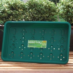 Kunststoffen bak (wij leveren zwarte!), lekker groot om veel soorten in te zaaien, verspenen of stekken. Deze grote maat is ideaal voor grotere soorten, zoals pompoenen etc.! De bakjes zijn voorzien van drainagegaatjes om te voorkomen dat zaaisels te nat worden. (lxbxh) 58x40,5x7 cm. Inhoud in liter: 13,5 l.