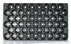 Geen losse potjes meer nodig, deze plaat (of tray) is een schakeling van 51, 54 of 60 ronde potjes met een kleine afmeting: 4 cm doorsnee en 5,2 cm hoog (80 cm ³ inhoud)