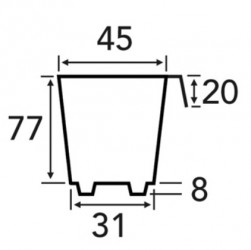 De verticale inkepingen dwingen de wortels tot verticale groei. Onderzoek geeft aan, dat planten voor beworteling meer behoefte hebben aan diepte dan aan breedte. Er gaat dus veel ruimte verloren bij de opkweek met potten, waarbij de diameter gelijk is aan de hoogte, er verdampt ook meer water. Een smal en hoog potje is dus het meest ideaal. De trays bevatten 77 potjes (7x11) en zijn 56,5x36 cm. De potjes zijn 45x45mm en 77mm diep. Leveringsmaandenhet gehele jaar