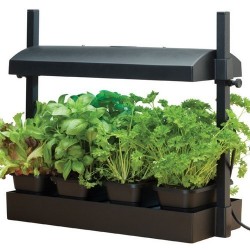Op een kleine plek in huis kan je met weinig licht of in de winter toch nog heel goed lekkere kruiden of bladgroenten kweken. Denk bijvoorbeeld aan koriander, basilicum, bieslook, rucola, pluksla etc. De 2 zuinige 11W groeilampen geven voldoende licht voor bladgroenten. De lichtbak is langs een stang traploos in hoogte verstelbaar tot een maximum hoogte van 38 cm boven kweekniveau. De onderbak (50x20 cm) is voorzien van een eilandniveau en een vocht absorberende mat, die als een lont werkt. Voor een grotere plantensolarium met meer licht en mogelijkheden: zie