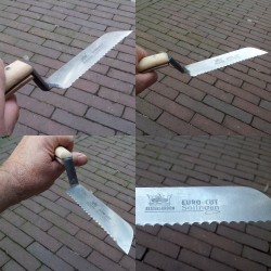 Dit mes is voor linkshandigen en telt 20 vlijmscherpe kartels. Heftlengte 15 cm. Leveringsmaandenhet gehele jaar