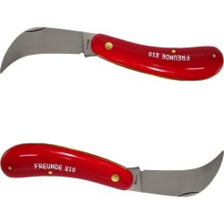 Dit robuuste mes is ideaal voor het snoeien van takken, het snijden van snibloemen, maar ook om slechte plekken aan boomstammetjes weg te snijden. Vlijmscherp, hoogwaardig en gepolijst messenstaal met een kunststof heft en messing groef.