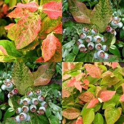 VANAF SEPTEMBER 2023 LEVERBAAR. Dit is een van de mooiste bosbessen die we kennen, vanwege het prachtig gekleurde blad: goudgeel + groen + rozerood met in de herfst als extra toegift nog vlammender kleuren! Als toegift geeft deze beauty een grote opbrengst van grote, mooie, stevige, lichtblauwe vruchten met een goede smaak. Dit bessenras kan zonder problemen na zelfbestuiving vruchten geven. Een goede kruisbestuiving met een ander ras geeft echter dikkere en meer vruchten.