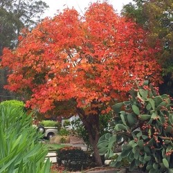 Dit is een zeer populair Kaki-ras in de professionele teelt en redelijk winterhard. De bomen zijn zelfbestuivend, (dan) zaadloos en geven toch flink grote, oranjerode vruchten. Dit ras is volledig vrij van looizuur, dus kan ook iets onrijp gegeten worden. Bij zeer rijke dracht is vruchtdunning aan te bevelen. Geef ze een extra beschutte plek voor goede en gezonde groei. We leveren geënte planten, die na 3 jaar vrucht kunnen dragen.