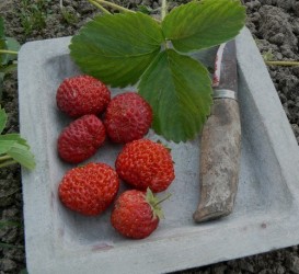 (1905) Kweker Franz Göschke uit Proskau. Begin 1900 kwamen de eerste suikeraardbeien (ananasaardbeien) van de kwekers. Ons huidige sortiment grote aardbeien is hiervan afkomstig. 'Königin Louise' geldt nog steeds als een lekker zoet ras met een tintje zure "afdronk"… Johannes Büttner (een beroemde Duitse kweker) vond dit ras en 'Sieger' de lekkerste aardbeien van heel Duitsland! Mijn smaakbeleving: diepe pitjes (net als de frambozenaardbei ‘Frau Mieze Schindler’) waardoor een prettig mondgevoel, vrij kleine vruchten, breedrond van vorm. Zeer zacht vruchtvlees met een zoete, iets zure smaak”