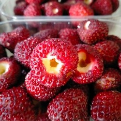 De muskusaardbei "Profumata di Tortona" is een vrijwel onbekende variƫteit uit de Italiaanse regio Piemonte, in die streek echter zeer gewild! Het rasje is erg populair onder kenners en fijnproevers. Elk jaar reizen deze toegewijden van over de hele wereld naar het Tortona-gebied om van deze prachtige vruchten te genieten, de oogst duurt slechts 15 dagen... De vruchten zijn zeer delicaat en kunnen niet worden vervoerd. Ze worden gekenmerkt door een zoet maar kruidig aroma. De vruchten zijn erg donker, bijna zwartrood. De smaak wordt omschreven als een mengsel van honing en kaneel. Het ras produceert alleen vrouwelijke bloemen, er moet dus een bestuiversras (zoek bij Fragaria moschata) in de directe omgeving aanwezig zijn. De planten worden ongeveer 25 cm hoog en vormen al snel een prachtig tapijt. Ze zijn geschikt voor de wilde teelt en verspreiden een intense, aangename geur.