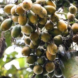 In de (Indonesische) tropen is dit een grote palm, wij moeten de plant dus (uiteindelijk) in een flinke pot telen. De bloei en vruchten ontstaan na vele jaren groei net onder de bladkruin.