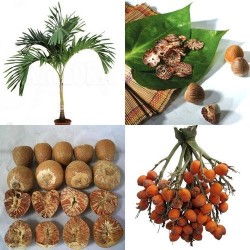 In het Verre Oosten wordt de onrijpe noot veel gekauwd. In Indonesiƫ noemt men het: het kauwen van de "Sirih-Pinang". De noot wordt in kleine brokjes gehakt en ingepakt in een stuk betelblad (niet van de betelpalm maar van de betelpeper (zie