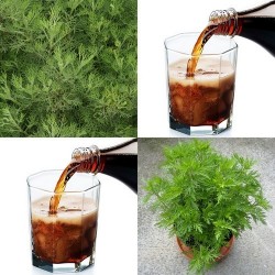 De uiteinden van de takken ruiken en proeven als Cola, verrassend voor en geliefd door kinderen! Voeg die topjes dan ook zonder problemen toe aan drankjes, desserts en maaltijden. De rest van de takken smaken bitterder maar geven bij de juiste dressing een goede smaakversteviging aan salades of vleesgerechten. Meteen goed voor de spijsvertering... De winterharde planten houden van zon en kunnen tegen zilte wind. De fijnvertakte, grijze blaadjes zijn op zich al sierlijk en worden in juli-oktober extra gesierd met kleine gele bloemetjes. Totale hoogte 80-100 cm.