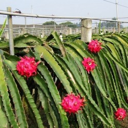 Niet veel mensen beseffen, dat de decoratieve en zeer smakelijke Drakenvrucht aan een cactus groeit! Kweek deze plant in een flinke pot, die op een pilaartje of tafel kan overhangen. Kwekerijen in de tropen binden 1-3 scheuten aan een stok van 1-3 m hoogte en toppen de planten vervolgens, waardoor productieve boompjes ontstaan. ‘s Zomers mogen de planten buiten in half zon, half schaduw (om inbranden van zon te voorkomen), bij veel regen liefst onder een afdak. ‘s Winters op een lichte, koele plaats tamelijk droog houden: in rust. Na jaren geduldige oogst komen de prachtige, witte bloemen en rozerode vruchten: rijp geplukt is het witte vruchtvlees met zwarte pitjes verrukkelijk: mildzoet, vergelijkbaar met meloen en kiwi!