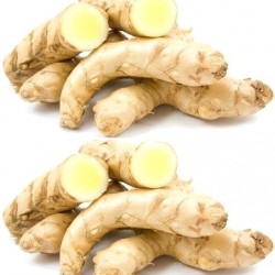Deze Zuid-Aziatische Kurkuma groeit uit tot een fraaie plant van ongeveer 1 m hoog met mooie bloemen in gele, witte en roze kleur, die ook nog eens heerlijk geuren! De dikke wortels zijn wit van binnen (vandaar de naam) en mengen de smaak van gember en mango met een stevige nasmaak. De wortels worden zowel vers als tot poeder vermalen gegeten, vooral als smaakmaker in gerechten (bijvoorbeeld als ingrediënt in curry) of thee. In Azië zijn meerdere medicinale toepassingen bekend.