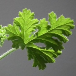 Bijna in 3 delen verdeeld en ingesneden blad en (later) ranke, roze rode bloemetjes met dieprode adertjes. Elk bloemetje is een kunstwerk! Een notig en fris aroma komt vrij na fijnwrijven van het blad.