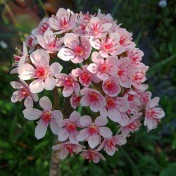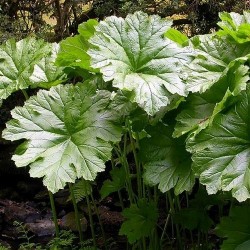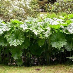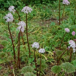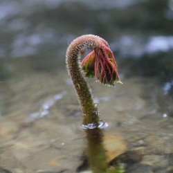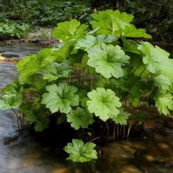 Een waterplant, die zich thuisvoelt aan de oever of in ondiep water, de thuisbasis is langs kreken van Noord-West Amerika. De bladstelen zijn smakelijk en kunnen geschild zowel rauw als (kort) gekookt worden gegeten. De smaak is fris zuur en iets zoet, naar het blad toe wat steviger van smaak. Gebruik jonge stengels! Vóór de bladgroei ontstaat de roze bloei op lange, kale stengels waarna de ronde en gegolfde, zeer decoratieve bladeren een imposante plant vormen: prachtig spiegelend langs de waterkant. In de herfst kleurt het blad roodbrons. De plant kruipt en breidt zich uit met bovengrondse wortelstokken, de zgn. rhizomen. Zowel zon als schaduw is oké, als het maar vochtig is. Bloeitijd april-juli, afhankelijk van de standplaats.