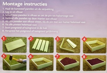 Voor kinderen is het zelf kweken van groenten en/of bloemen een leuk avontuur. Om overzichtelijk te beginnen is dit verhoogde plantenbedje in vrolijk groene kleur een goed begin. De panelen maken samen een tuintje van 58x58 cm em 13.5 cm hoog. Zet dit tuintje niet op de tegels, maar gewoon in een bestaande tuin en vul het bedje met tuinaarde of potgrond. Dit is helemaal het eigen domein van elk kind dat groene vingers mag krijgen…