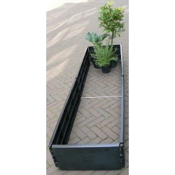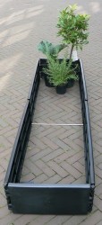 Deze koppelset verlengt het verhoogde plantenbed (845201) tot een lengte van 2 meter. Een stevige metalen verbinding zorgt voor de koppeling en 2 zwarte panelen van 100% recycled kunststof verdubbeld de afmeting van het basisplantenbed.