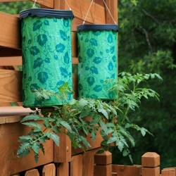 De hangcontainer bestaat uit een stevige groene nylon geweven zak (15 liter) met een metalen hangkabels, een stevige kunststof bodemplaat topdeksel. Gebruik onze biologische potgrond (