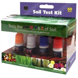 Test zelf de zuurgraad en het voedinggehalte van je grond. Verschillende redenen om de zuurgraad te meten: soms treden er onverklaarbare groeiremmingen op in de tuin, moet ik kalk strooien of niet? Je wilt je nieuwe tuin aanleggen... welke planten zullen er het beste aarden? De zuurgraad is de basis, vervolgens komt het humusgehalte en de voeding om de hoek kijken... De 3 belangrijkste mineralen (“zouten”) die een plant gebruikt zijn stikstof N, fosfor P en kali K (niet te verwarren met Calcium = kalk). Met deze testdoos kan je het gehalte van deze 3 voedingszouten toetsen. Goed voor totaal 60 keer testen.