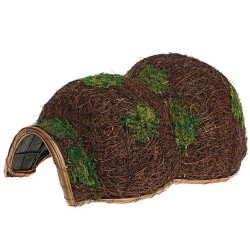 Deze “mand” is gemaakt van draadstaal, waterdicht gemaakt en bedekt met fijne twijgen, een zeer stevig geheel! Plaats de egelwoning op een enigszins droge ondergrond op een beschutte en rustige plaats in de tuin. Leg wat losse bladeren in de mand. Dek vervolgens de mand af met een dikke laag bladeren, takken en andere natuurlijke materialen. De opening dient vrij gelaten te worden en liefst niet naar het Noorden of Noordoosten gericht zijn. Belangrijk is dat het bouwwerk voldoende stevig is zodat honden, dassen, enz het niet gemakkelijk kunnen vernielen. De afmetingen zijn: 45 x 33 x 17 cm. Leveringsmaandenhet gehele jaar