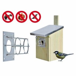 Eekhoorn/Marterkorfje: Biedt bescherming tegen de roof van vogeleieren en jonge vogels uit de nestkast van mezen, mussen en nog vele andere soorten. Denk hierbij aan roofdieren zoals bijv.: eekhoorns, marters, spechten, katten. De invliegopening ΓΈ 32mm is geschikt voor koolmeesnestkasten en kleinere vogels. Monteer het bij voorkeur buiten het broedseizoen om.