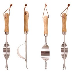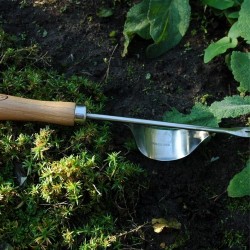 Deze penwortelsteker is gemaakt om onkruid met een penwortel uit te steken. Rustend op de bolle kant kan de wortel zonder veel inspanning worden opgewipt door het handvat naar beneden te drukken. Dit model bestaat al heel lang en is beproefd! Het materiaal is van RVS met een essenhouten handvat. De totale lengte ongeveer 37 cm.