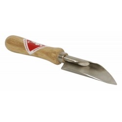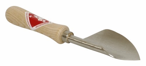 De scherpe kant is zo gevormd dat hij precies de bloempot volgt en, dus goed schoonschraapt. De krul voorkomt het afvallen van de grond. Totale lengte 26,5 cm. Bladmaat 12 x 5,5 cm. Gewicht 195 gr. Leveringsmaandenhet gehele jaar
